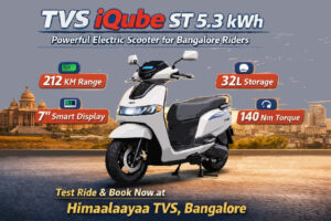 The TVS iQube ST 5.3 kWh electric scooter stands out as a strong performer in India’s EV segment, offering excellent range, smart connected features, and practical comfort — all backed by the trusted TVS brand and supported locally by Himaalayaa TVS in Bangalore. Whether you want long-distance range reliability or everyday performance, this scooter is a compelling choice for modern riders.