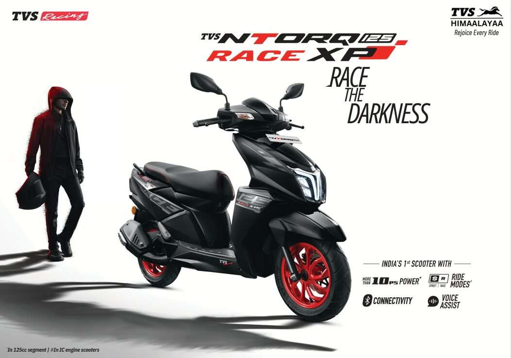 The all new TVS NTORQ Race XP, India’s 1st 125cc scooter with more than 10hp power. XP or Xtra Power makes your ride powerful like never before. The industry’s first multiple Ride Modes allow you to change your scooter’s performance to suit your riding style. Now control your scooter with Voice Assist and make a splash with striking Race-inspired graphics.